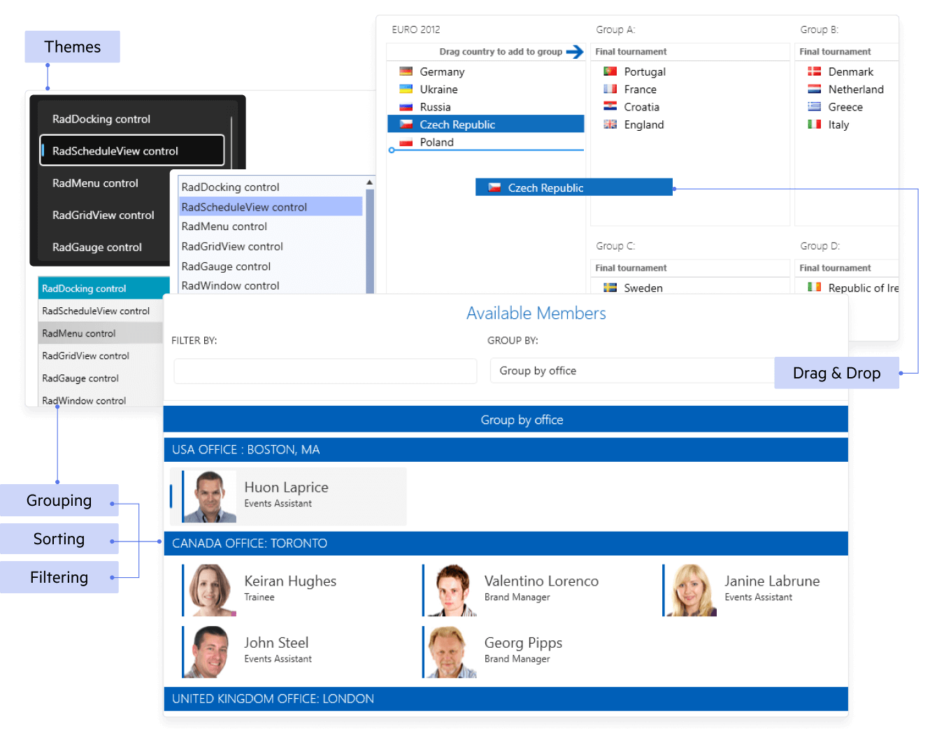 The Telerik UI for WPF extensions handle the following major points in the development with Telerik UI for WPF: