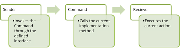 Command pattern encapsulates a request as an object and gives it a known public interface. Using this pattern ensures that every object receives its own commands and provides a decoupling between sender and receiver. A sender is an object that invokes an operation (usually called Invoker), and a receiver is an object that receives the request and acts on it. The idea can be easily represented by the following diagram:
