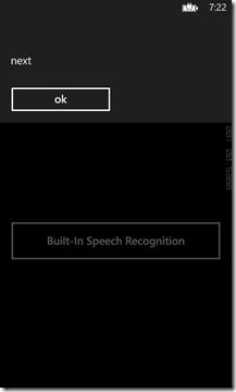 12: 13: SpeechRecognitionUIResult result = await speechRecognizer.RecognizeWithUIAsync(); 14: if (result.ResultStatus == SpeechRecognitionUIStatus.Succeeded)