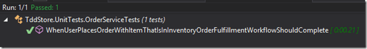 1: [Test] 2: public void WhenUserPlacesOrderWithItemThatIsInInventoryOrderFulfillmentWorkflowShouldComplete()