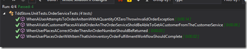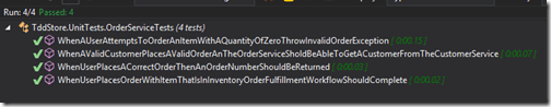 26: _orderFulfillmentService.CloseSession(orderFulfillmentSessionId); 27: } Running the tests again show’s we’re still dealing with working code (figure 3):