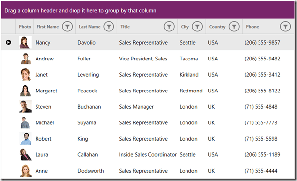 You can go from a Grid shown in Figure 9 to Figure 10 by using implicit styles pointed out in the beginning. Just select the Windows8Touch theme by scrolling down the project configuration wizard.