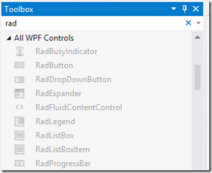 This can quickly be resolved by navigating to Telerik -> RadControls for WPF or Silverlight -> Launch Toolbox Configurator. You will get a warning that Visual Studio will be restarted, reloading your current solution. After pressing finish, you will now see your Toolbox items as shown in Figure 5.