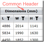 Here we have three ordinary columns ( L, W, H)  with regular column headers . There is also an additional common header – ‘Dimensions’ which spans over the three regular headers.