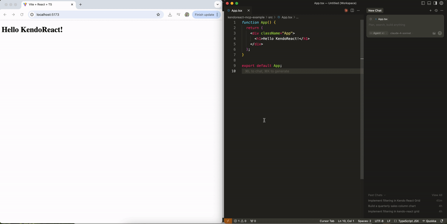 The @progress/kendo-react-mcp server implements this for KendoReact. When we install it and configure it with our editor, the AI assistant gains access to comprehensive knowledge about KendoReact components. It’s not guessing at how to use the Grid, or the Scheduler, or the DatePicker. It’s referencing the actual documentation and best practices.