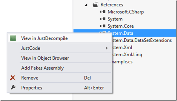Figure 2 – The “View in JustDecompile” option in the Solution Explorer