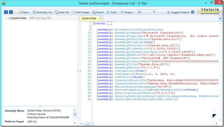 Figure 3 – System.Data has been decompiled