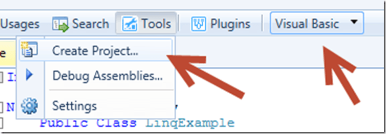 One of the most requested features for JustDecompile is improved VB.NET support. This feature opens up the ability to modify assemblies in a language you are comfortable with. Using this new feature I can select “Visual Basic” from the language drop down listbox and then select “Create Project…” from the “Tools” menu to decompile the assembly into VB.NET and create a new VB.NET project (Figure 4):