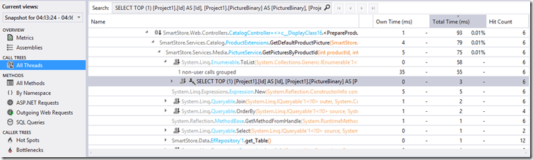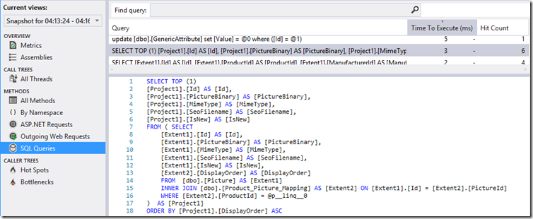 This view provides me some information about my query, including where it was called from and its hit count. If I need more detailed information about my SQL query, specifically what the query was, I can view in the SQL Queries section of the Methods group (Figure 5):