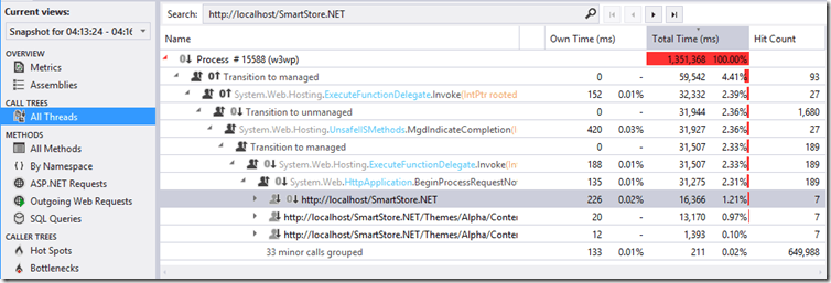 As I can see in the Total Time for the application process, the execution time went from 195,569 ms to 25,638 ms. That one misplaced line of code was causing a huge performance hit, but JustTrace was able to find it, enabling me to fix the problem.