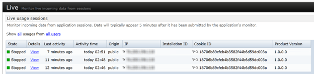 When you click on the View link next to one of the application sessions, you can see more detailed information about how the application was used during that specific session.
