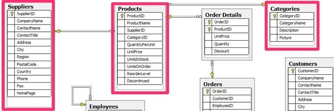 Notice that the Products table is related to both the Categories and Suppliers tables. This means that in order for us to effectively edit a product, we need to be able to edit its supplier and category as well. To do this, we are going to setup models for not just products, but categories and suppliers as well.