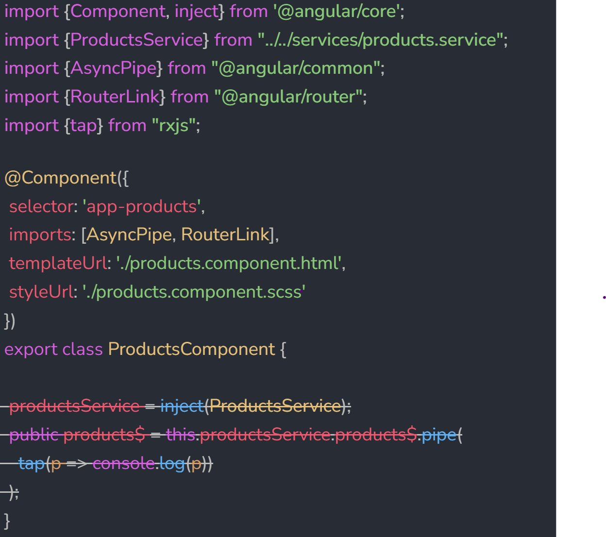 The final code in products.component.ts looks like this: