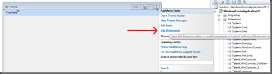 Recently a question regarding how to change the BackColor of the RadMenu for WinForms. I thought it might be easier to outline this process with screenshots so I put together a quick post to answer the question. After creating a new WinForms application project, I added a RadMenu. The screenshot below shows that the default color of the menu is blue.