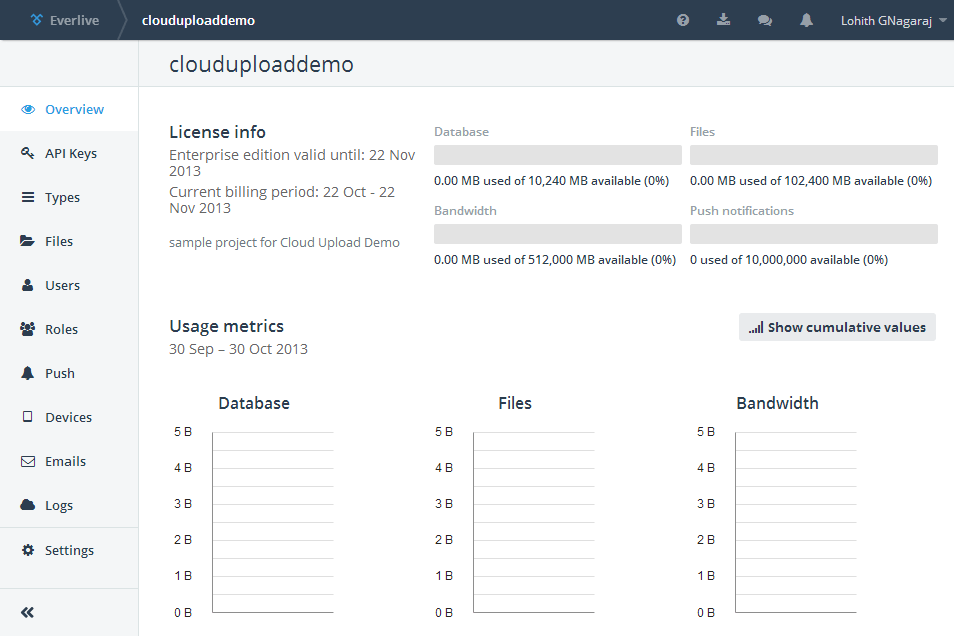 Creating Everlive Project to store files: