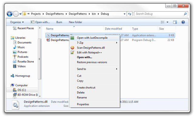 You may find yourself wanting to decompile an assembly after browsing to it in Windows Explorer, but you have open JustDecompile from the start menu and load the assembly through it. This is a productivity killer, and we have responded by adding JustDecompile to the Explorer context menu.