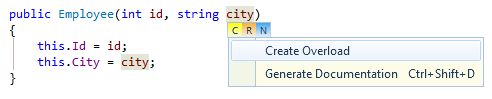 Telerik JustCode makes you more productive by reducing the amount of code you must type by hand. It features quick ways to create the constructors you need, as you are working with that piece of code.