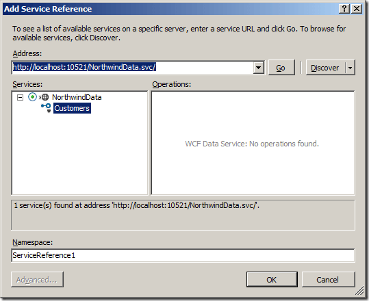 * Because of the RadDataServiceDataSource you need to add reference to System.Data.Services.Client.dll however if you try to compile the application you will get errors due to duplicate types. To resolve these errors you can remove all references from the Silverlight class library project added automatically after the service reference