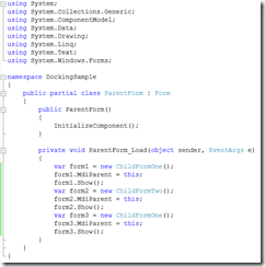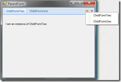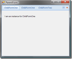 As you can see my ParentForm Load routine is not doing anything special, just creating two instances of ChildFormOne and a single instance of ChildFormTwo.