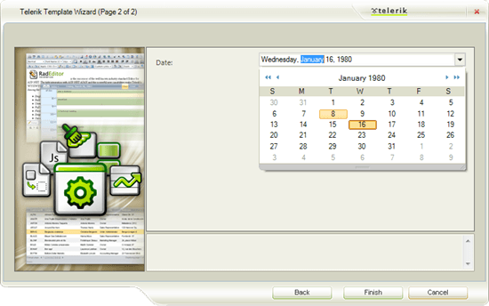 7. Click Finish. After a few moments, the Telerik Wizard will create a new Project Item.
