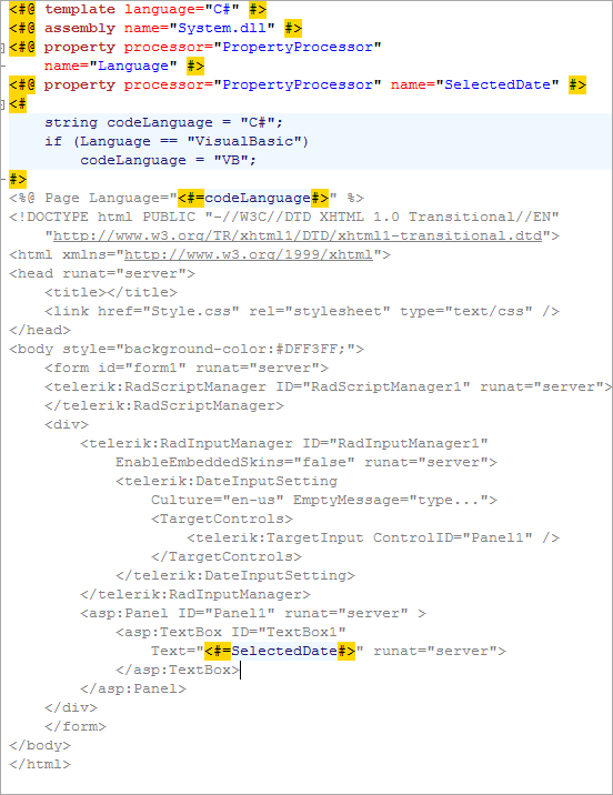 3. Add the MyTemplate.t4 and TemplateInfo.xml to the appropriate ItemTemplate folder found in your RadControls for ASP.NET AJAX installation folder, for example: