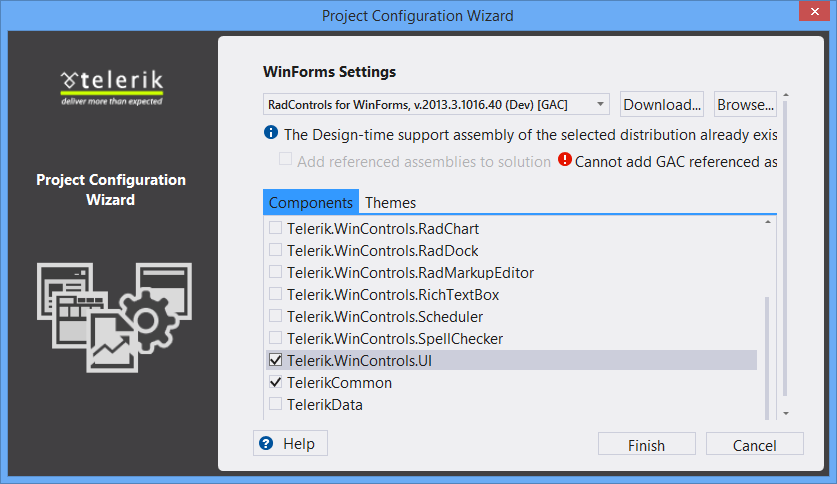 To get started, open Visual Studio and create a new RadControls for Windows Forms Application, I’ve named my project RadRatingCustomShapeElement. When the project configuration dialog is shown, check the checkboxes for Telerik.WinControls, Telerik.WinControls.UI and TelerikCommon, then click Finish.