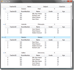 The end result is my grid will now display both the Teacher information and the Students that are in that Teachers classes. See below.