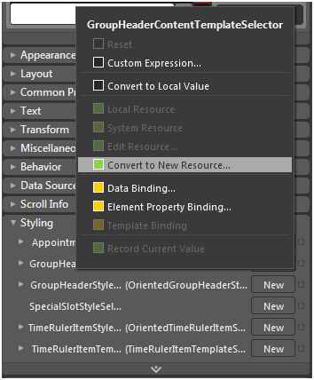After that click the ‘New’ button of the GroupHeaderContentTemplateSelector and pick our custom selector: