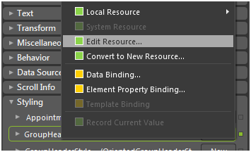 Click again the “GroupHeaderTemplateSelector” and “Edit Resource”: