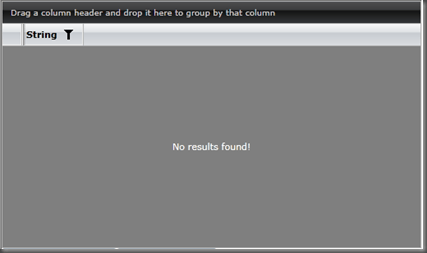 One more RadGridView behavior frequently requested by our clients is to display a message when there are no records to display. A typical real life scenario would be a RadGridView displaying a list of search results. When there are no results found we would like to have a message like “No results found!” displayed in RadGridView.