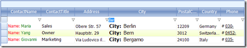 this.radGridView1.Columns["City"].FormatString = "<html><b>City</b>: {0}"; //City will be bold