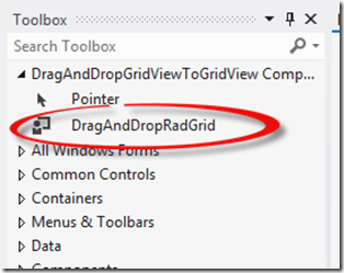 Build the solution and our custom grid is now setup and ready for us to use. You can locate it in the Visual Studio toolbox when in the design view of a form.