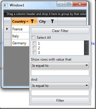 For the purposes of this demo the user control is not exactly visually rich. If you need more complex UI you can easily add any required UI elements into the ComboColumnFilteringControl.xaml.