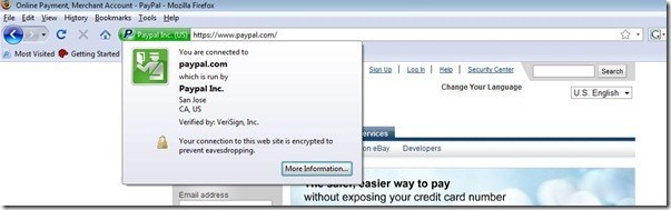 Another neat feature is the one-click site info now offered in the address bar. By clicking the favicon you can see who owns the site and check if you are on a secure connection or not. Any site using Extended Validation SSL certificates will cause the favicon to turn green and upon clicking it will display the site owner's information. You can easily use this one-click solution to determine how secure your online transactions will be.