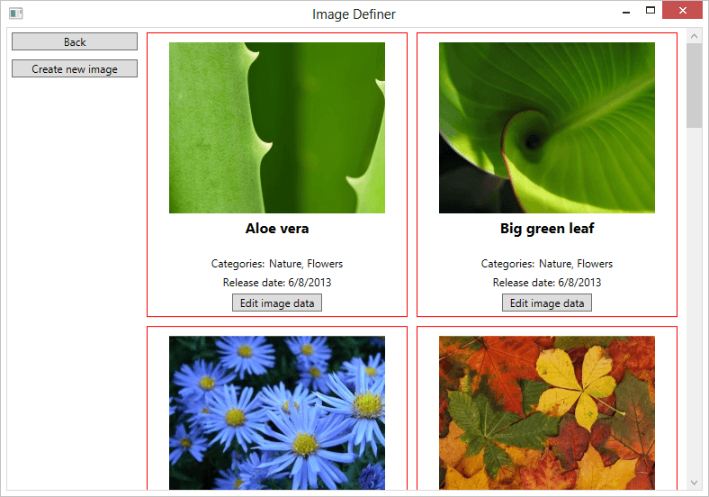 Solution: Enless Soft decided to create a simple tool that will help them manage everything related to their app. The tool is internally called “Image Definer”. The Image Definer is a desktop WPF app and it uses the .NET SDK to connect to Everlive.