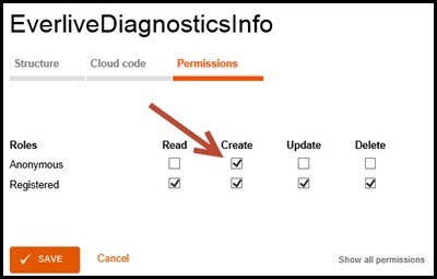 By default if the user is not logged in the data is not captured, to allow anonymous users to submit this data then we will need to give them the “Create” permission as shown in Figure 5 and 6.