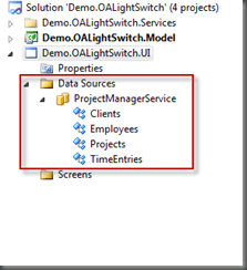 4. The project containing your model. In my case: Demo.LightSwitchOA.Model