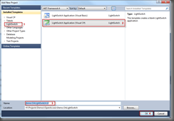 Our first task today is to add a LightSwitch Project to our solution. Do this through the standard “Add New Project” dialog. You should see “LightSwitch” as one of the installed templates in the tree view on the left. Select C#/VB, give the project a name, and click Ok.