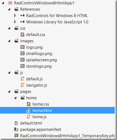 Figure 9 – The RadControls for Windows 8 HTML Project Template
