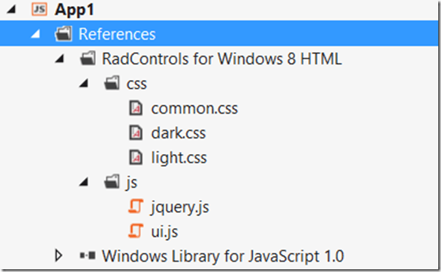 The easiest way to add RadControls for Windows 8 HTML into your project is to use the provided template, but where’s the challenge in that? Let’s do it the manual way first, and then take full advantage of the supplied template. Perhaps you have your own internal template that you use, or you already have a project that you are working with, and want to add the RadControls. Either way, it’s good knowledge to have, and it’s crazy easy!