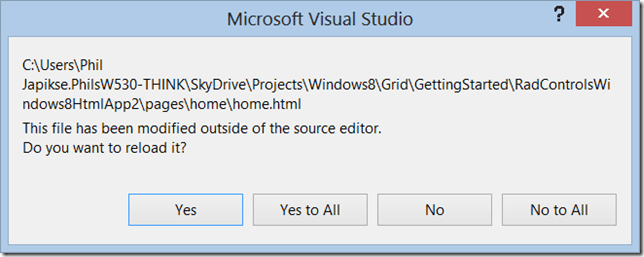 This is the super easy part, since it happens automatically! After adding the RadGrid through Blend and going back to Visual Studio, you will be greeted with the dialog similar to the one shown in Figure 4.