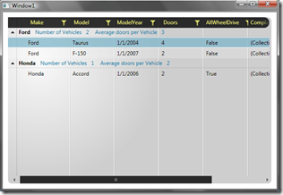 When I run this code you will see that now, in the Group row that the Captions I identified are listed along with the aggregated data.  There are ways to do this inside of your data, but the RadGridView for WPF provides this functionality out of the box.