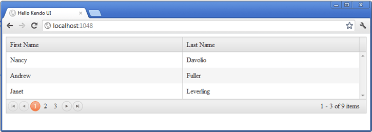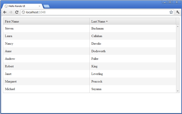 Now with that simple piece of markup and small bit of JavaScript, you have created a Kendo UI Grid .