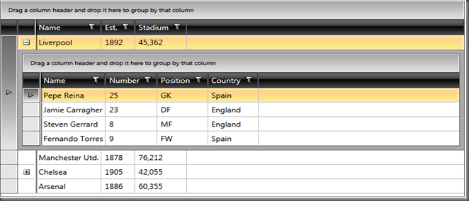 In our case here the goal will be to create a behavior that enables us to bind to the property of the RadGridView’s rows – IsExpandable. Normally you do not need to do nothing more but to set it to the value you want. However, if it is necessary to use it after the grid is loaded, you have to add some more lines of code in the application to make it work. Here the scenario will be to load the data asynchronously and to show the button for expanding only if there is items in the RowDetailsTemplate. The resulted RadGridView should be the following: