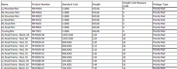 Now when we preview the report, we will see that our custom postage type function is being used and displayed in the table.