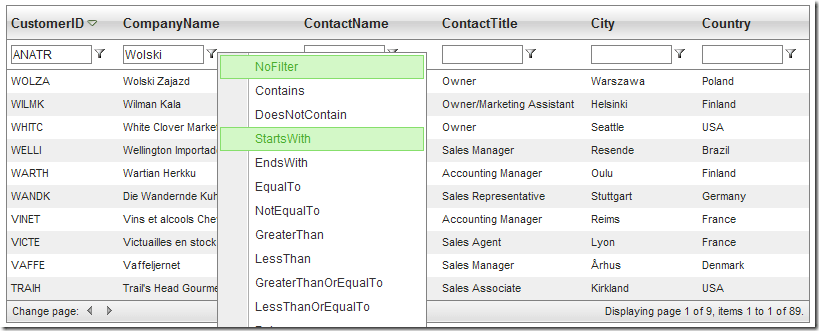 I’ve made small Silverlight application to illustrate the new feature – two instances of RadGridView bound to Northwind Customers using ADO.NET DataService: