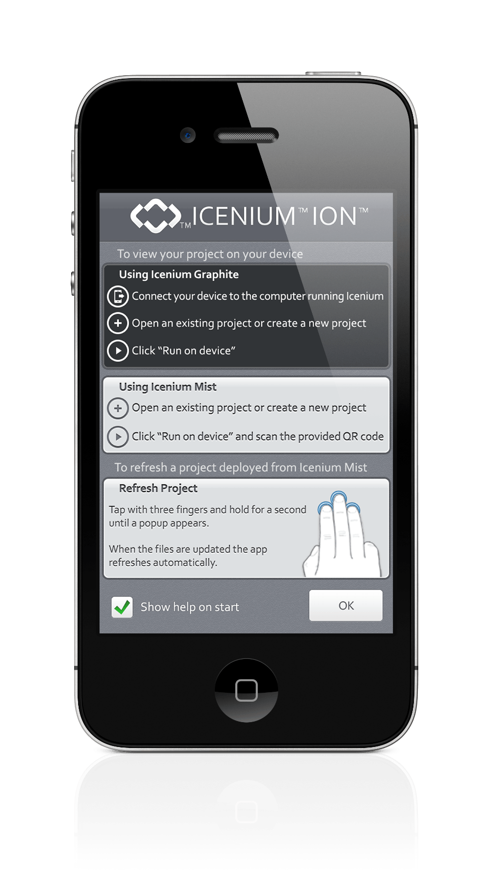 downloadable for free from the AppStore) that enables you to load your app onto any iOS device regardless of whether or not it has been provisioned. Simply scan a QR code provided by Icenium and the app will download and launch inside Ion. Of course, LiveSync on demand works perfectly with Ion too.