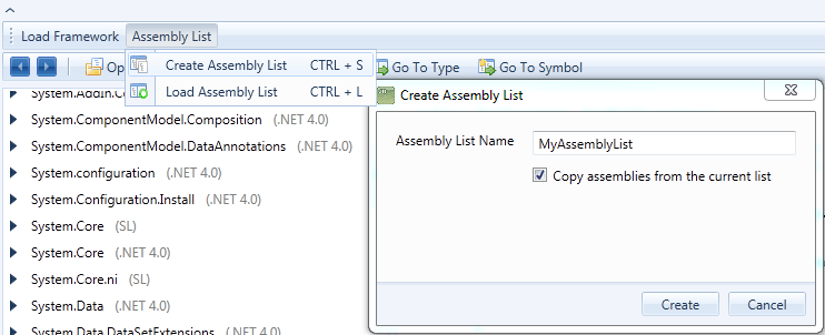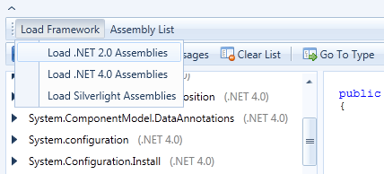 Getting the assemblies you want to browse loaded has always been more difficult than it should be! JustDecompile finally does it right. You can quickly load the core framework assemblies for .NET 2, .NET 4, and Silverlight with a single click.