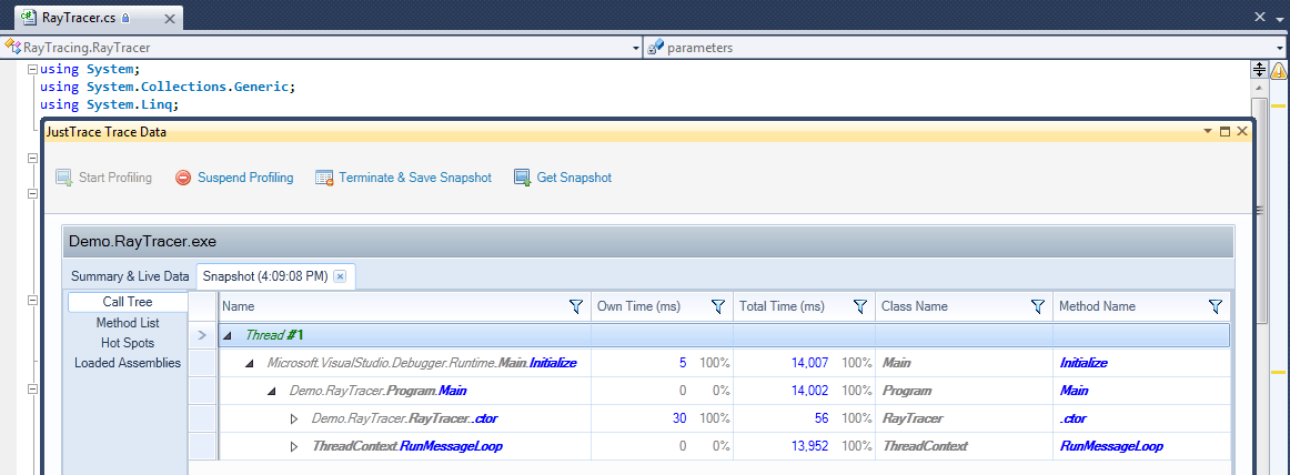 In JustTrace we've taken full advantage of RadControls for WPF to provide tools that make it easy to sort and filter the profiler data. Quickly zero-in on the methods and types that matter to you.