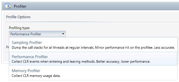 2. Performance Profiler – Collects CLR events when entering/leaving methods (more accurate)
